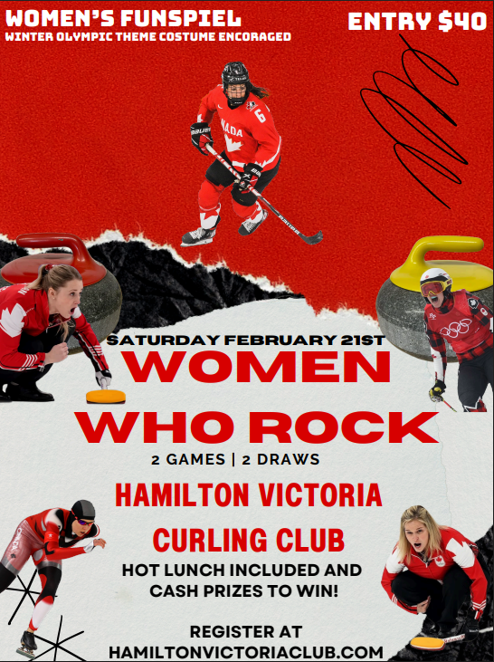 Women Who Rock- a fun spiel for women, trans, and non-binary members is happening on February 21st, 2026. We are looking for members with all skill levels who want to rock out and have fun; sign up as an individual and balanced teams will be made